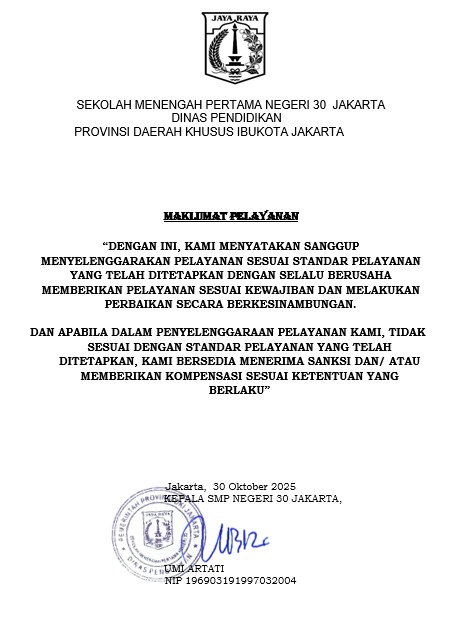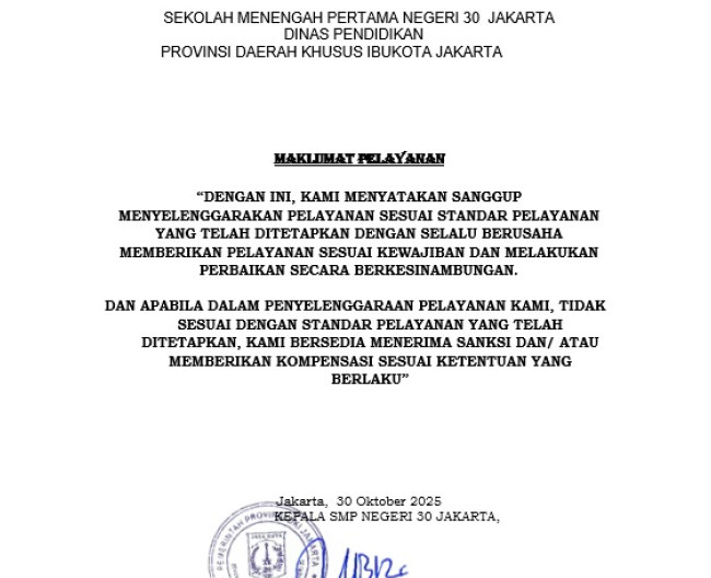 STANDAR PELAYANAN SMP NEGERI 30 JAKARTA